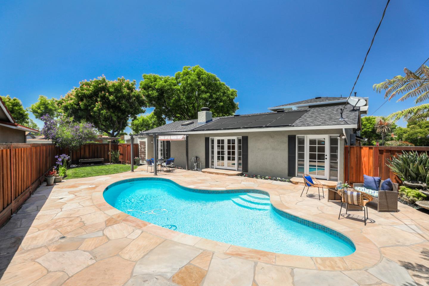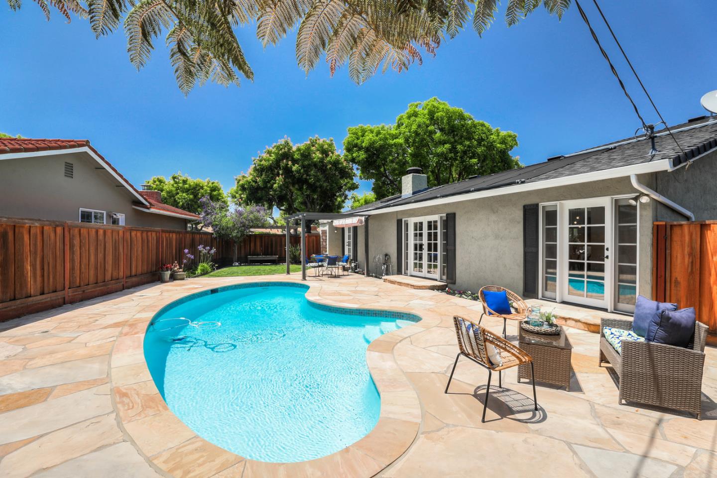 Welcome to this lovely updated 3 Bd/3 Ba home in Sunnyvale's coveted Ponderosa Park neighborhood. Great corner lot home in the heart of Silicon Valley. Stunning private master suite completely updated w/dual sinks, large jacuzzi soaking tub, separate shower, cozy towel warmer, walk-in closet w/built-ins. Beautiful updated kitchen w/cherry cabinets, under cabinet lights, granite counters & high-end appliances. Light & bright open floor plan - perfect for entertaining. Spacious living area w/ tiled flooring & new light fixtures. Double french doors lead to gorgeous pool w/ flagstone patio, bench seating & serene water fountain. Small grass area w/bench, pergola & beautiful plants complete the yard. Professionally landscaped w/auto sprinkler system for front/back/side yards. Ready to move in!! Close to Apple, Google, LinkedIn, Cisco, NASA. Walking distance to Ponderosa Elementary and centrally located to 100's of Restaurants, shopping, fun & entertainment with easy Freeway access.