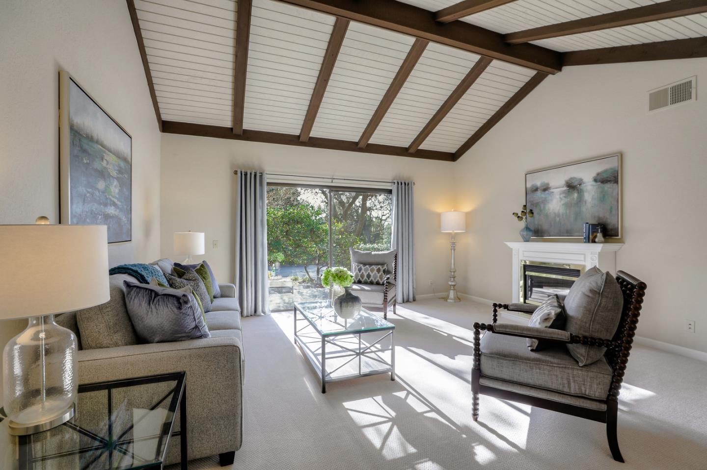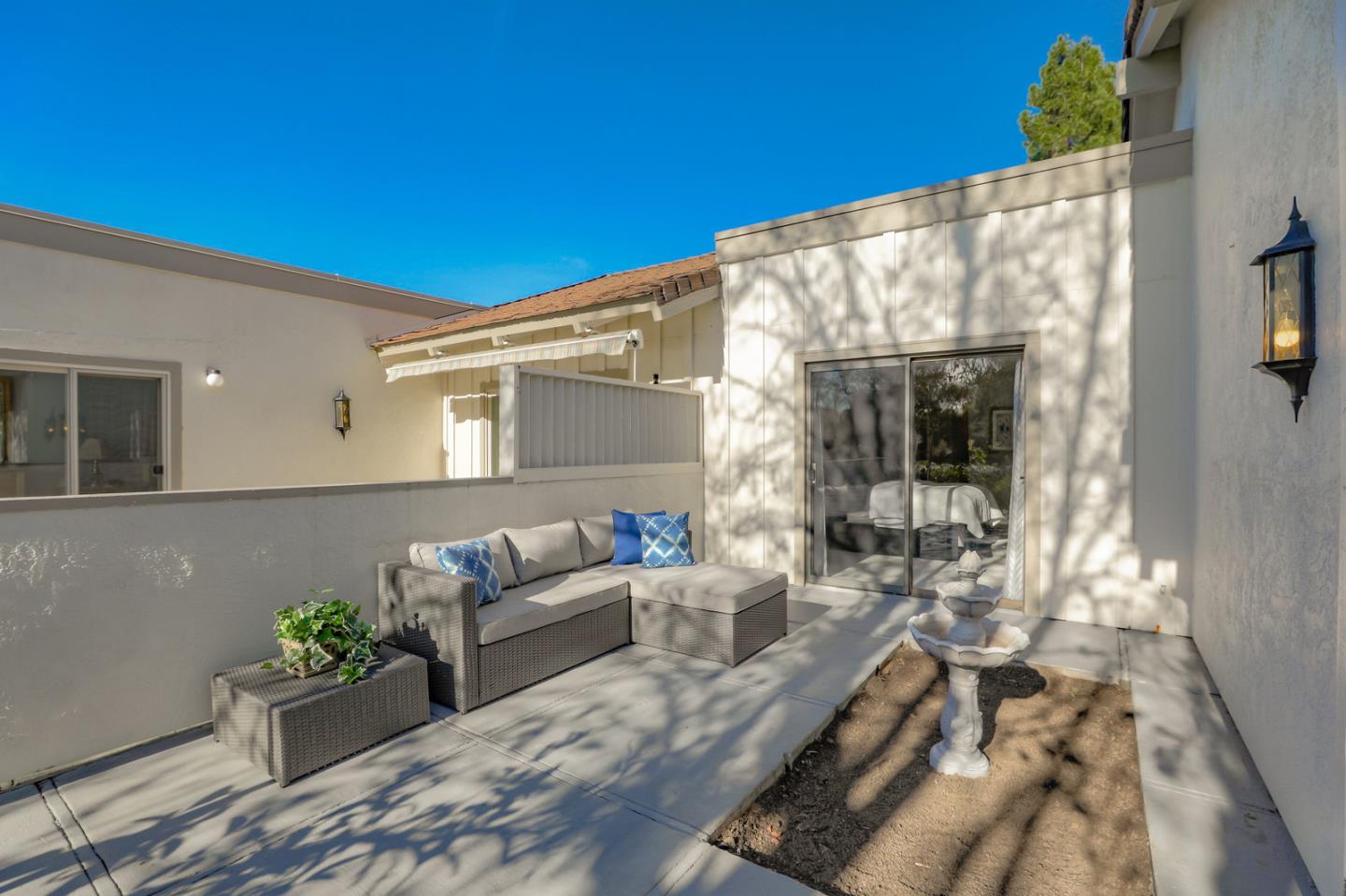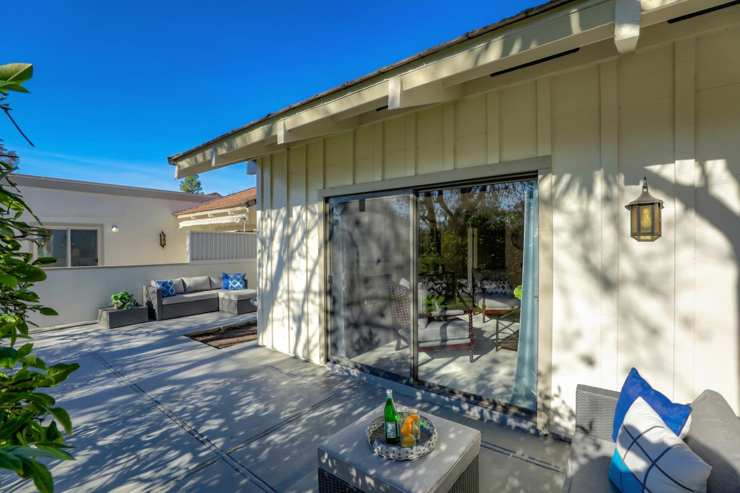 Excellent opportunity to own a beautifully updated 2 bd, 2 ba single level Villa located in a gated resort style community. Once you pass through the private and inviting courtyard, your welcomed with an open, bright and spacious floorplan with many upgrades throughout, including: Updated and freshly painted eat-in kitchen with new marble counters and breakfast bar, stainless steel appliances, lots of storage and laundry facility or office space ~ all opening to a spacious formal dining and living room with vaulted ceilings. Split bedrooms with walk-in closets. Spacious master suite with 2 closets, new sink, faucet, medicine cabinet, toilet and granite counter. Both living room and master bedroom lead to expansive wrap-around patio with surrounding lush landscaping. Beautiful new blinds and curtains, interior door and cabinet hardware and all new flooring and baseboards throughout. Don't miss this home! ONE PERSON MUST BE 55+ TO LIVE AT THE VILLAGES GOLF & COUNTRY CLUB.