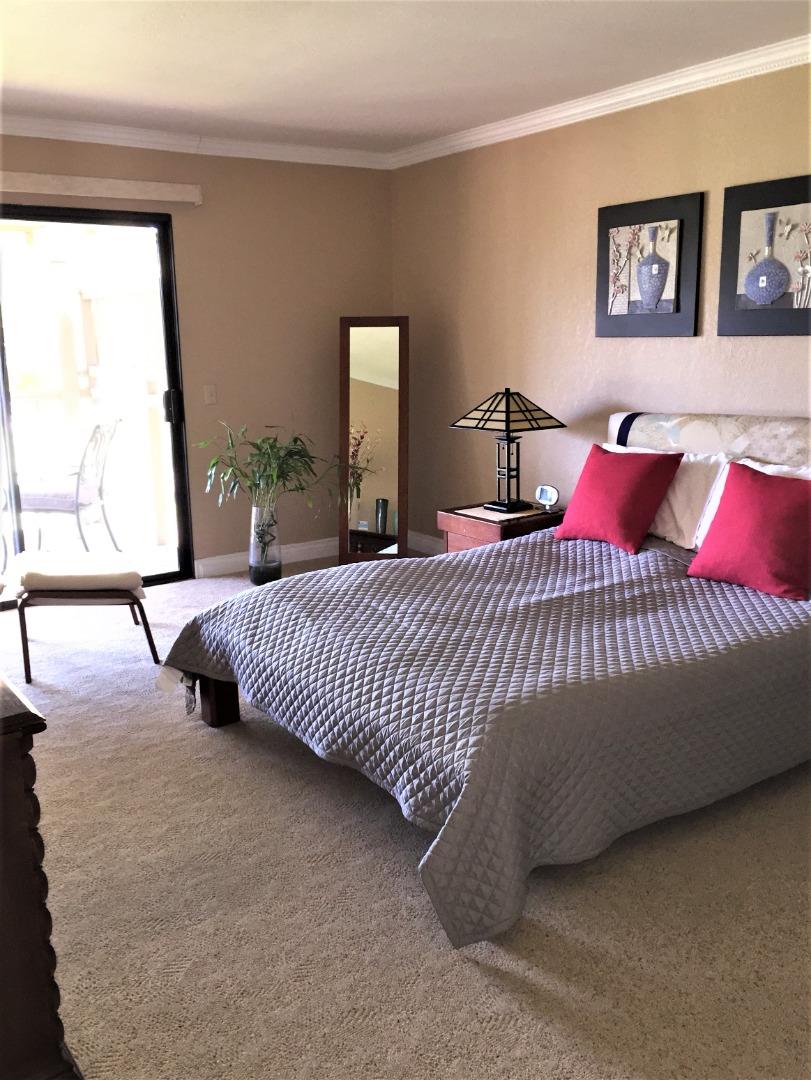 55+ COMMUNITY: This unit overlooks hole #16/17 with spectacular lake, golf course and lovely sunset views throughout. Sit and enjoy the wonderful resort life from your balcony. Bright, spacious unit with vaulted ceilings, fireplace and updates throughout is a must see. Indoor laundry room with washer/dryer, abundance of amazing closet space/organizers, 1 car garage, plus 1 assigned carport. The Villages Golf & Country Club is a gated community located in the Evergreen Hills of Silicon Valley. Amenities include: 24 hr. security, 6 Tennis Courts, 4 Swimming Pools, 2 Golf Courses: 18 Hole Championship Course, 9 Hole Par 3, Putting Green, Driving Range, Hiking & Walking Trails, Gardner Areas, Bocce & Pickle Ball Courts, Billiards, RV Storage, Horse Stables/Trails, State of the Art Exercise Facility, BBQ Area, Restaurant & Bistro for Dining, over 60 organized clubs, activities, special events and more. ONE RESIDENT MUST 55+. HOA Fee included. No Pets. No Smoking.