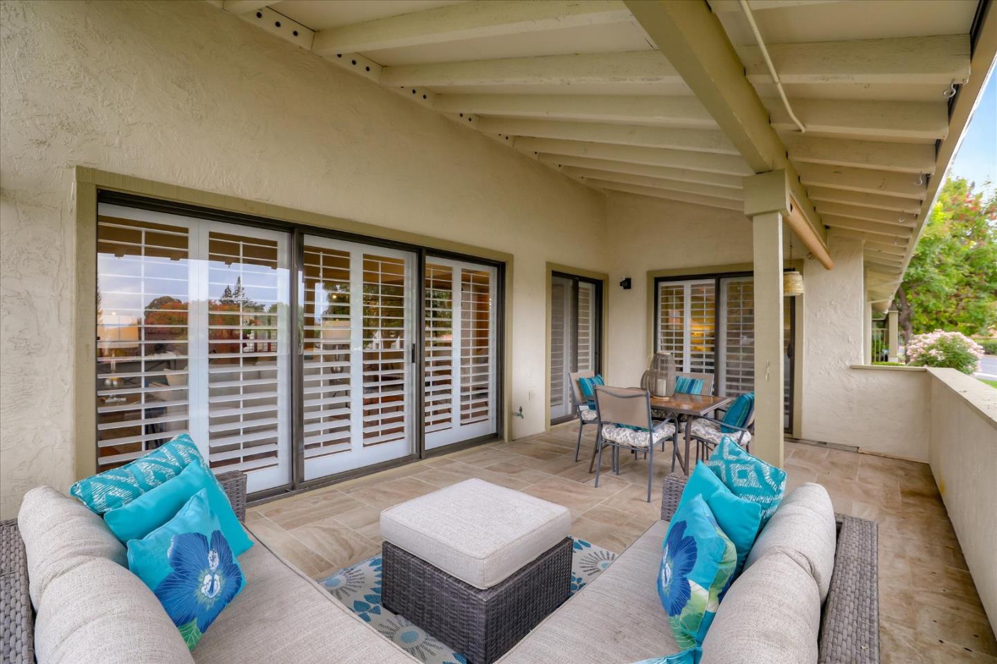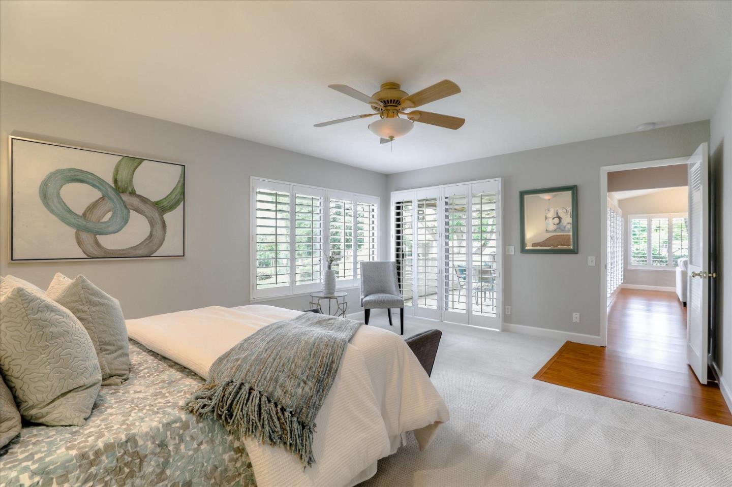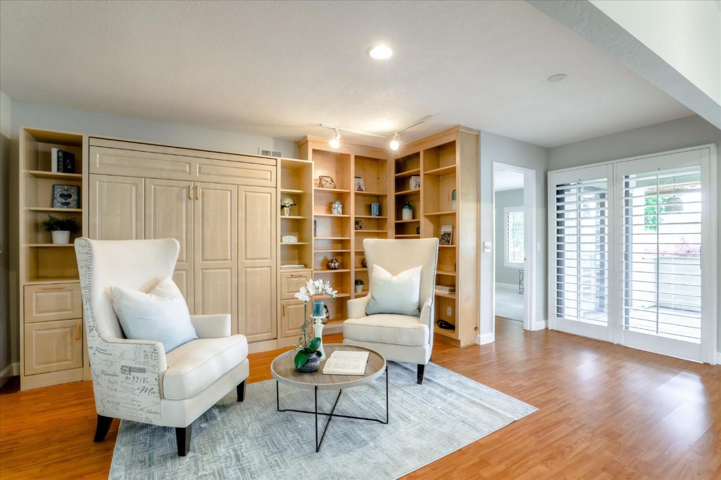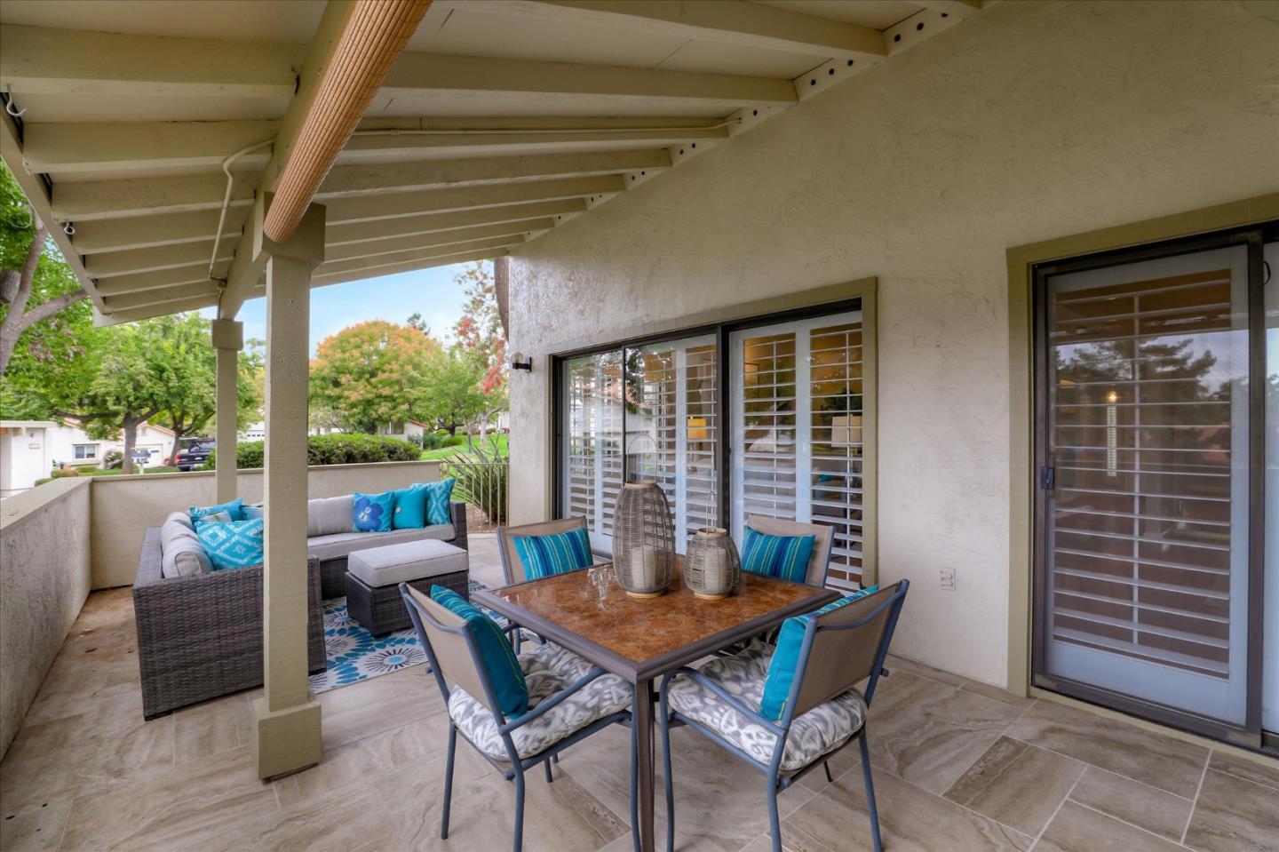 GORGEOUS, REMODELED & RECONFIGURED FLOORPLAN. Single level 2 Bd, 2Ba Villa in a fabulous location. Beautiful, large patio to enjoy expansive surrounding greenbelts. Past your private garden & water feature, you are welcomed w/ an open, spacious floorplan. Remodel includes: Designer paint, beautiful shutters, custom kitchen w/ stunning maple cabinets, granite & SS appliances. Fabulous stone fireplace. Oversized living area w/ sitting room & built ins. Large suite w/ sitting area and remodel bath - has 2 large vanities w/ luxurious shower and custom cabinets. Newer flooring throughout home. Sliders in living room & primary bedroom lead to large, titled patio w/ lovely landscaping & serene setting. 24 hr. gated security, 6 Tennis Courts, 4 Pools, 2 Golf Courses w/ Range, Hiking/Walking Trails, Bocce & Pickle Ball, RV Storage, Horse Stables, Gym, BBQ Area, Dining for Breakfast, Lunch & Dinner, organized clubs/activities & more. One person MUST be 55+.